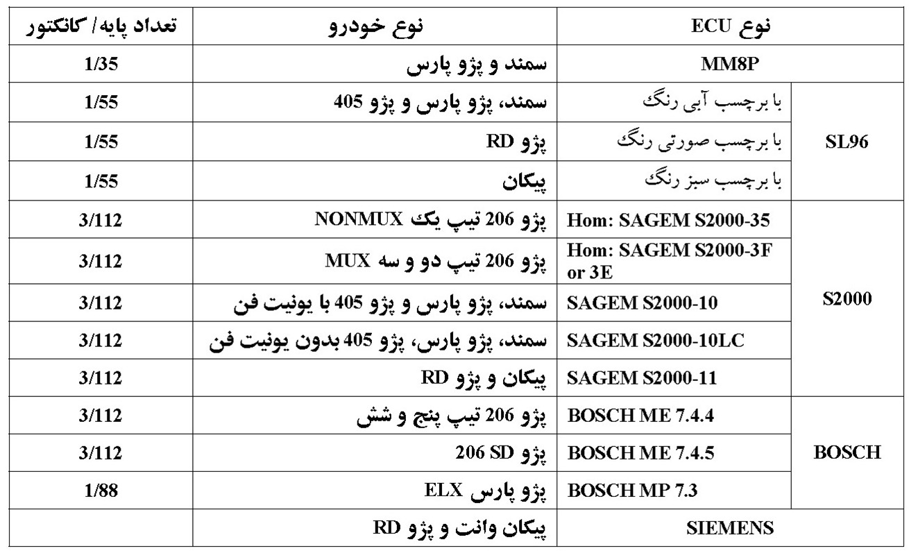 anve-ECUنکته: درزمان بازبودن سوئيچ يا روشن بودن اتومبيل هيچگاه کانکتور ECU  را جدا ننماييد.