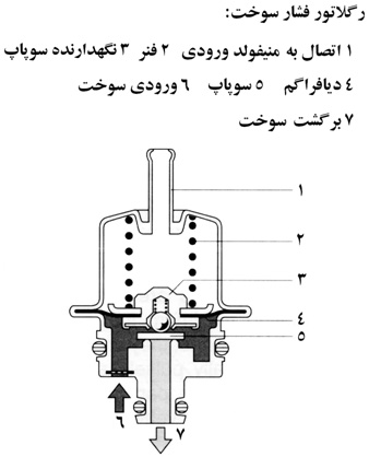 رگلاتور فشار سوخت ، فشار سوخت را در ریل سوخت طوری تنظیم میکند که نسبت بین فشار جلو و پشت انژکتور همیشه ثابت باشد یا به عبارت دیگر اگر مکش در مانیفولد هوا زیاد شود فشار داخل ریل سوخت را به همان نسبت کاهش می دهد تا فشار نسبی ثابت بماند.